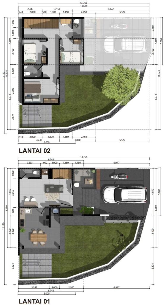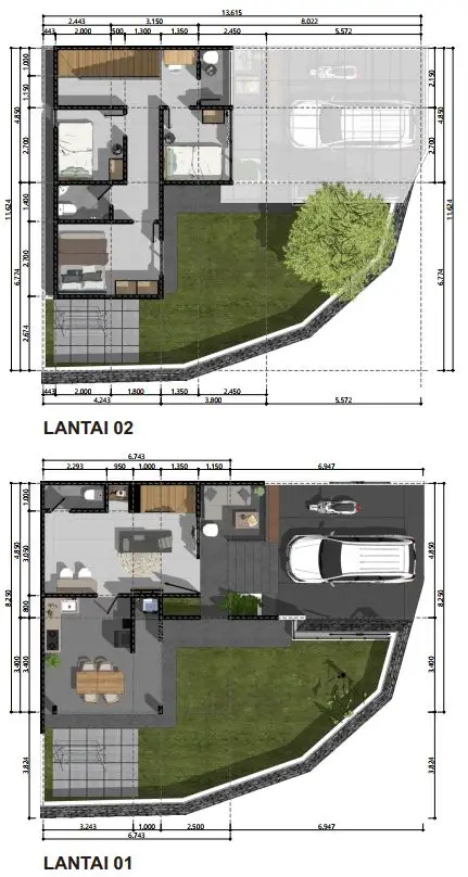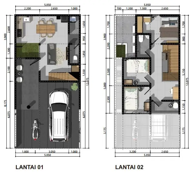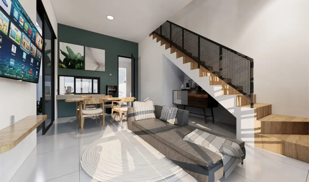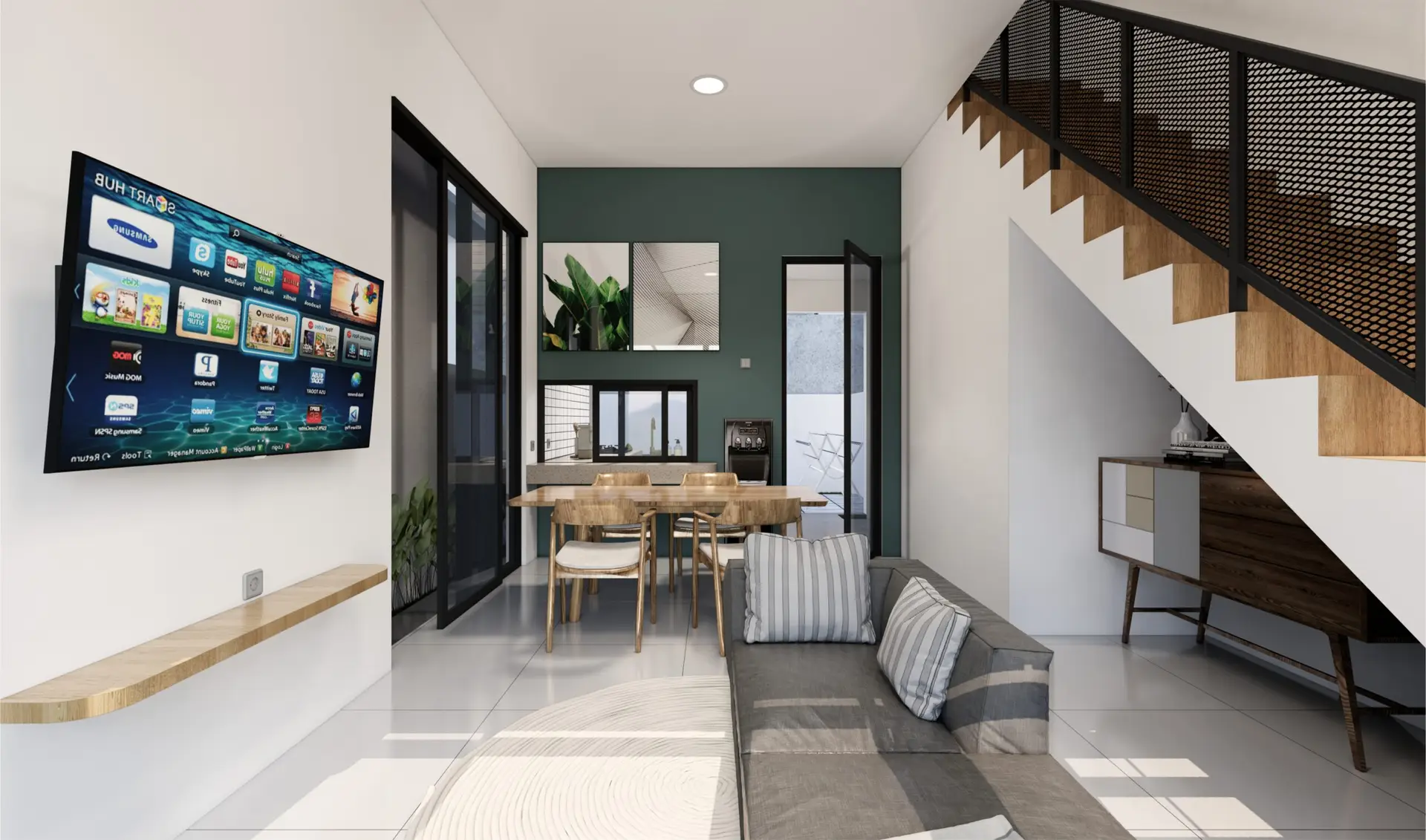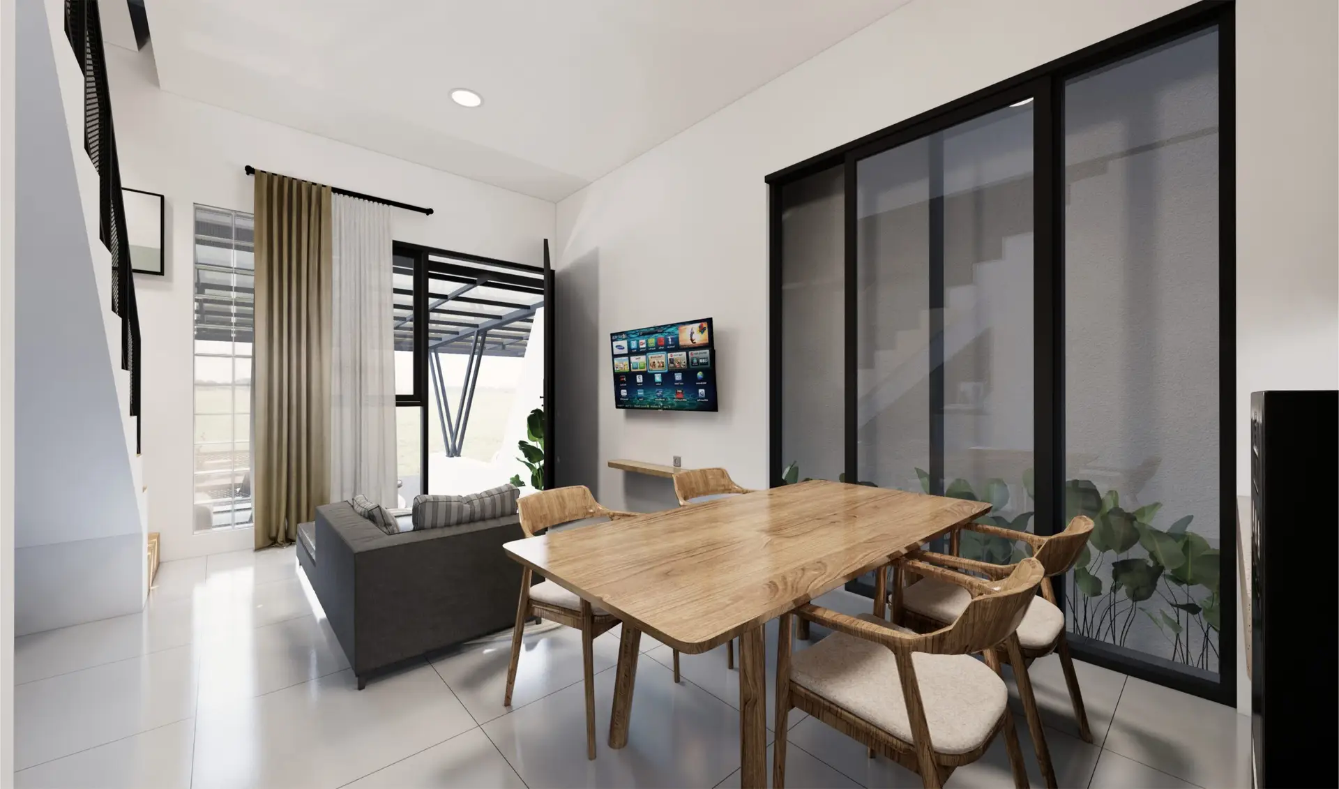 A spacious two-storey home with 3 bedrooms, 2 bathrooms, a large open living–dining–kitchen area, and a wide private garden. Strong indoor–outdoor flow, generous natural lighting, and a big carport–terrace combo make Type B ideal for families seeking extra breathing space and comfort.