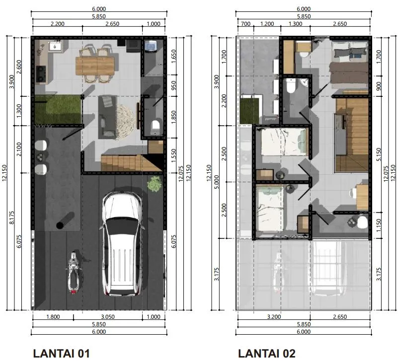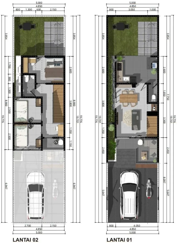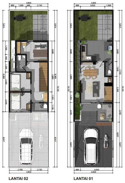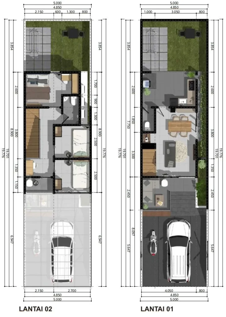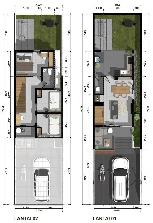 Unit D is a mirrored twin of Unit C, offering a bright and functional two-storey layout with seamless indoor–outdoor flow. Featuring 3 bedrooms, 2 bathrooms, a long open-space living–dining area, and large front and rear outdoor zones, this unit delivers a balanced combination of comfort, airflow, and everyday practicality. Ideal for families who want a modern home with generous outdoor breathing space and efficient room planning.