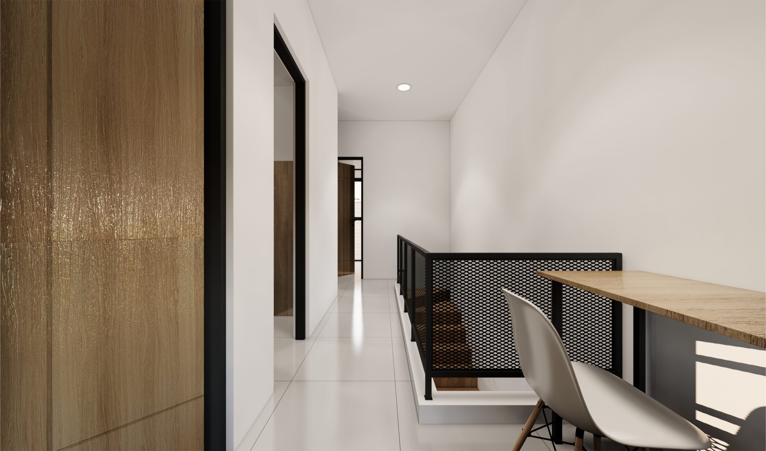 Bright hallway connecting all bedrooms Small study corner adds usability Minimalist design that keeps the space peaceful